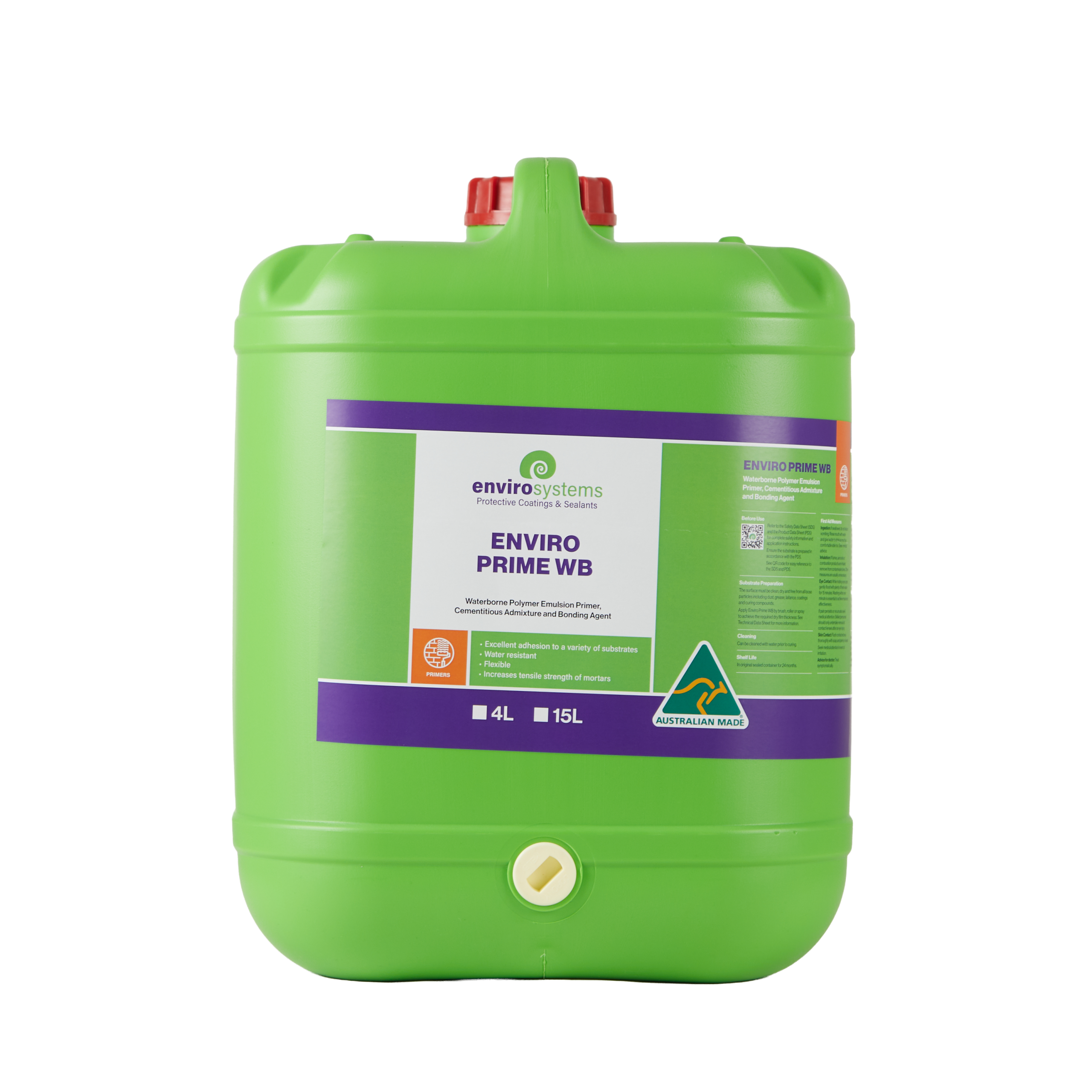 Enviro Prime WB is a water-based polymer emulsion formulated as a primer for specific waterproofing membranes, an admixture for cementitious mortars and a bonding agent for spalling repair products.