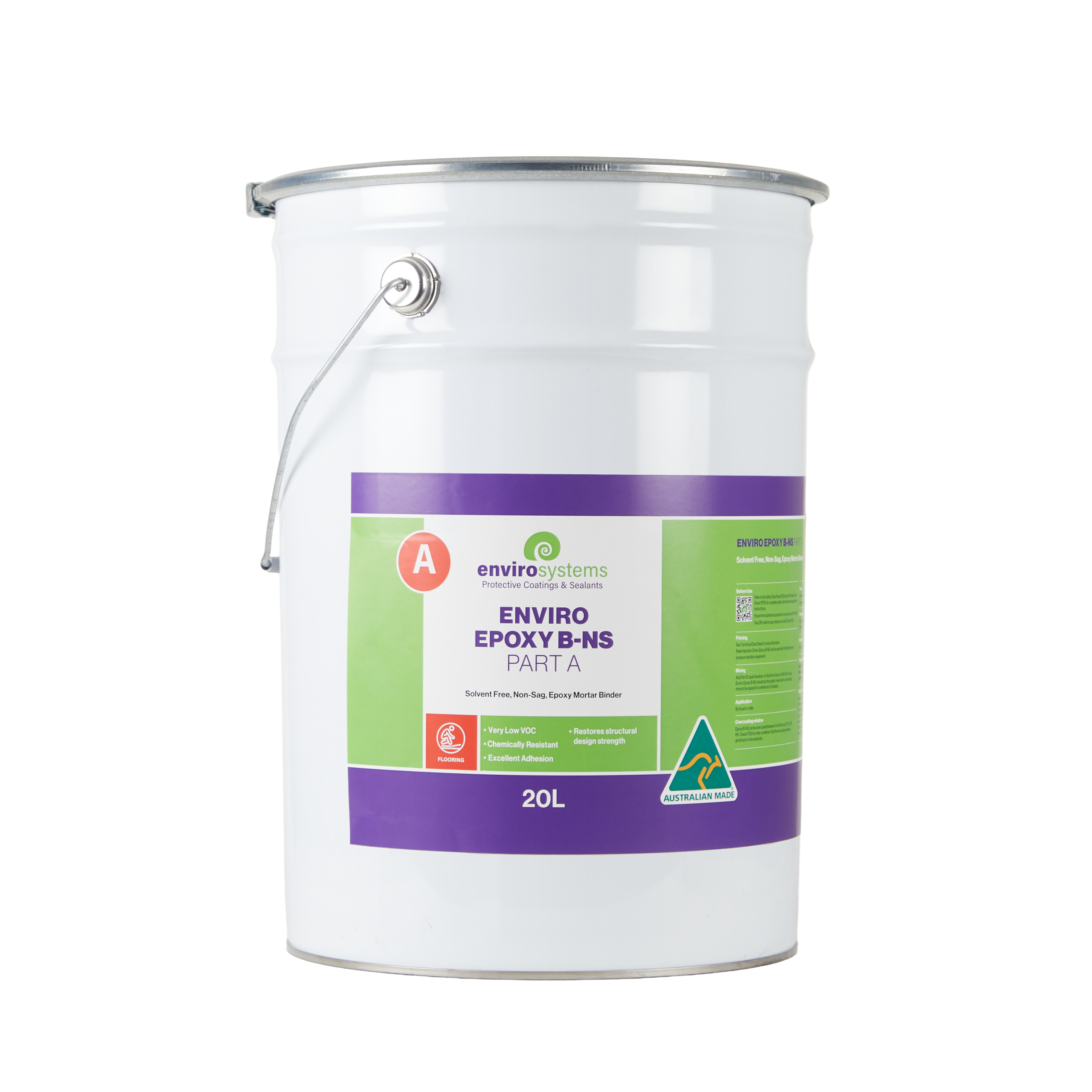 Enviro Epoxy B-NS is 100% solids, solvent free, thixotropic epoxy mortar binder suitable for structural concrete repairs in vertical and overhead applications. Epoxy B-NS has a proven history in concrete repair, bonds to a variety of substrates and performs well in the most demanding environments.