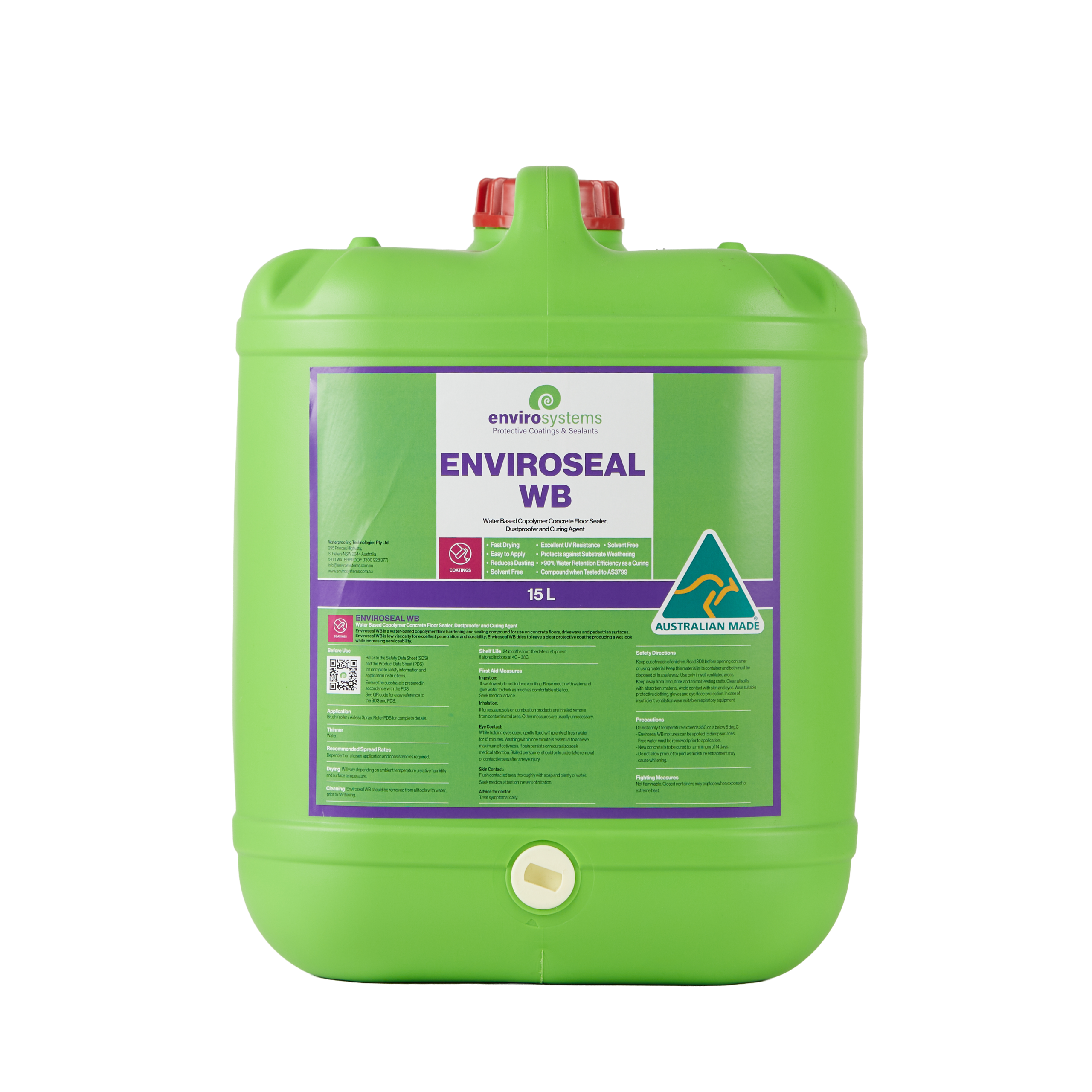 Enviroseal WB is a water-based copolymer floor hardening and sealing compound for use on concrete floors, driveways and pedestrian surfaces. Enviroseal WB combines small particle size, high solids and low viscosity for excellent penetration and durability. Enviroseal WB dries to leave a clear protective coating producing a “wet look” while increasing serviceability.